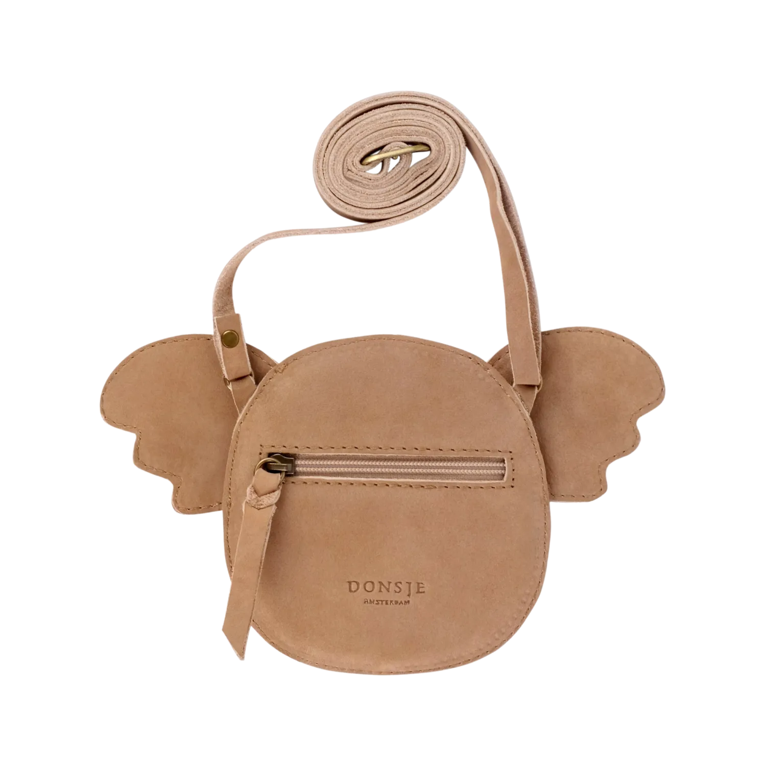 Handtasche für Kinder aus hellbraunem Leder in Form eines Koala-Gesichts mit Schulterriemen