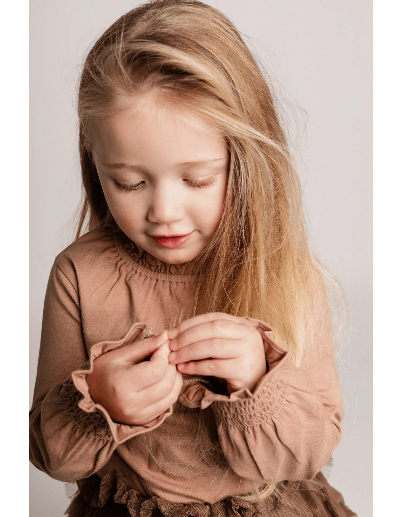 Die gesmokten Details an den Ärmeln und dem Ausschnitt verleihen dem ELA Longsleeve eine elegante, verspielte Note. Diese raffinierten Details machen das Shirt zu einem echten Hingucker und unterstreichen seinen hochwertigen Charakter.