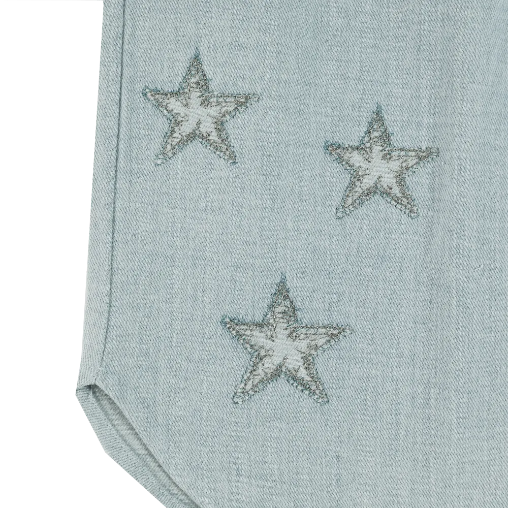 Donsje Hauke Denim Trousers Stars ice blue Detailaufnahme aufgestickte Sterne