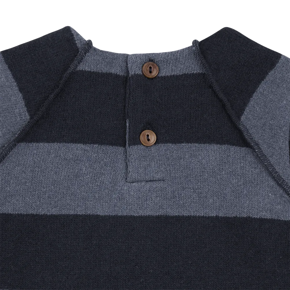 Der Jumpsuit WOLFGANG von 1+ IN THE FAMILY besteht aus butterweichem Baumwoll-Fleece. Das nachhaltig hergestellte Material ist besonders leicht zu tragen, dabei wärmend und atmungsaktiv zugleich. WOLFGANG macht dank seiner bequemen Passform jede Bewegung und jedes gemütliche Nickerchen mit. Die Druckknöpfe unten und die Knöpfe im Nacken machen das An- und Ausziehen zum Kinderspiel. Der süße Jumpsuit überzeugt nicht zuletzt auch mit seinen klassischen Blockstreifen in den allerschönsten Farbkombinationen - hier in hellblau und dunkelblau.