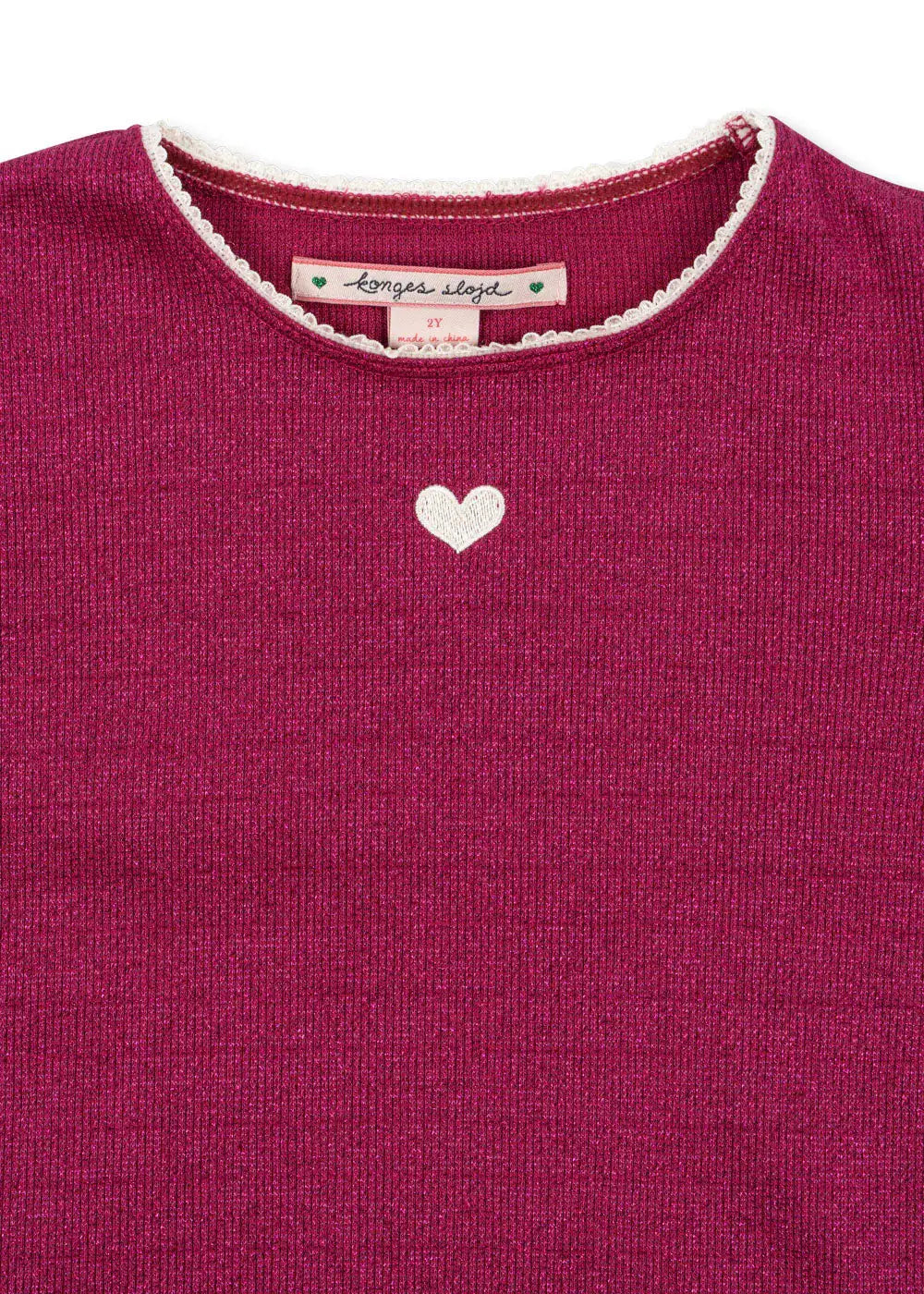 Die ROLI BLOUSE von KONGES SLØJD ist ein weiches und dehnbares Langarmshirt mit Rippstruktur und ist der perfekte Allrounder für Mädchen. Es kann für sich allein getragen oder ganz praktisch unter Kleidern kombiniert werden. Die pinke Farbe, das eingestickte Herz und die Spitzen-Details am Ausschnitt machen ROLI zu einem besonderen Langarmshirt. Das eingewobene Lurex-Garn verleiht ihm einen dezenten Schimmer, der jeden Look spielerisch aufpeppt. Da ist die Freude beim Tragen garantiert!
