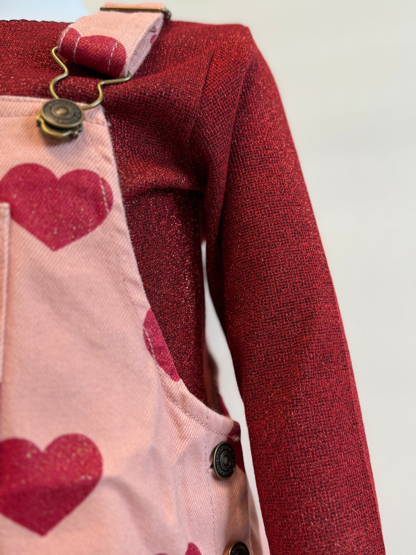 Dieses MAGOT Latzkleid von KONGES SLØJD kommt mit roten Glitzer-Herzen daher! Das Mädchenkleid besteht zu 100% aus GOTS-zertifizierter Baumwolle, sodass es besonders schonend zu der Haut Deines Mädchens und zu unserer Umwelt ist. MAGOT hat zwei einfach zu bedienende Verschlüsse an ihren Trägern, die das An- und Ausziehen zum Kinderspiel machen. Das absolute Highlight dieses nachhaltigen Jeanskleids sind die glitzernden, roten Herzen auf dem rosafarbenen Jeansstoff. Wer das Glitzer-Thema weiter aufgreifen und noch mehr in Szene setzen möchte, kann MAGOT ideal mit dem Langarmshirt ROLI kombinieren.