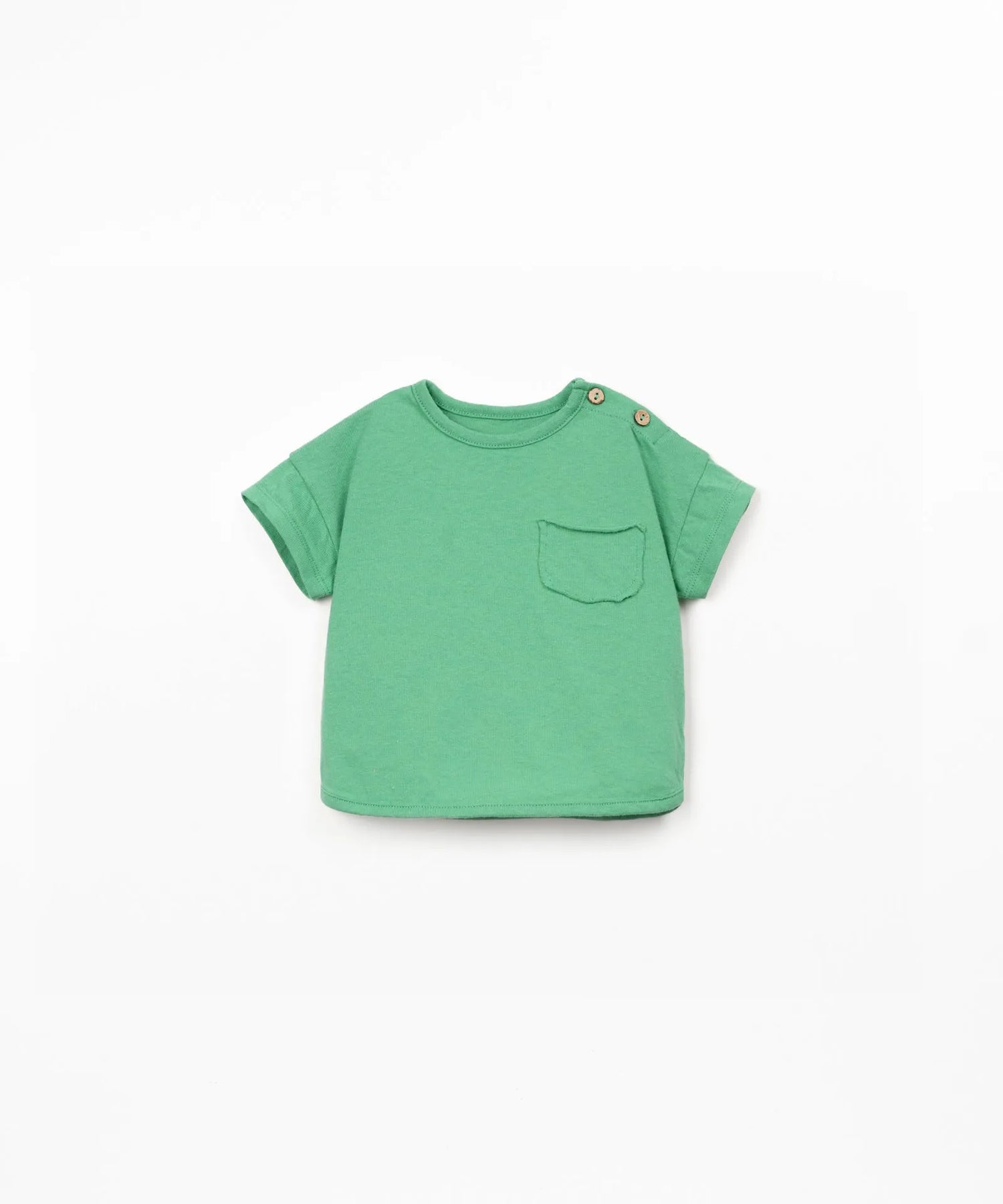 Das Jersey T-Shirt in Mint von Play Up vereint nachhaltigen Komfort mit zeitlosem Design. Das froschgrüne Kurzarm-Shirt überzeugt durch seine weiche Jersey-Qualität aus 50% recycelter Baumwolle und 50% Bio-Baumwolle – perfekt für empfindliche Kinderhaut.