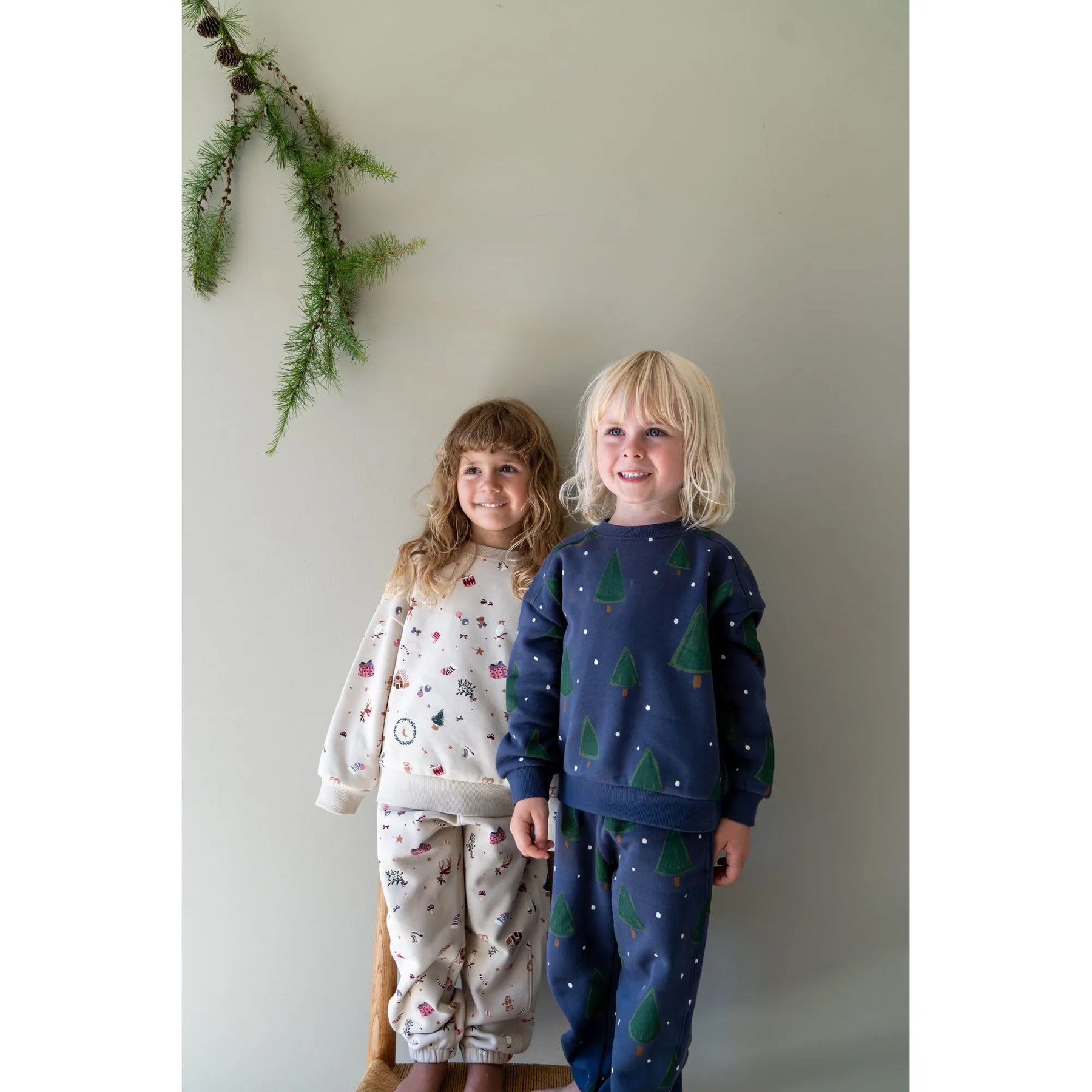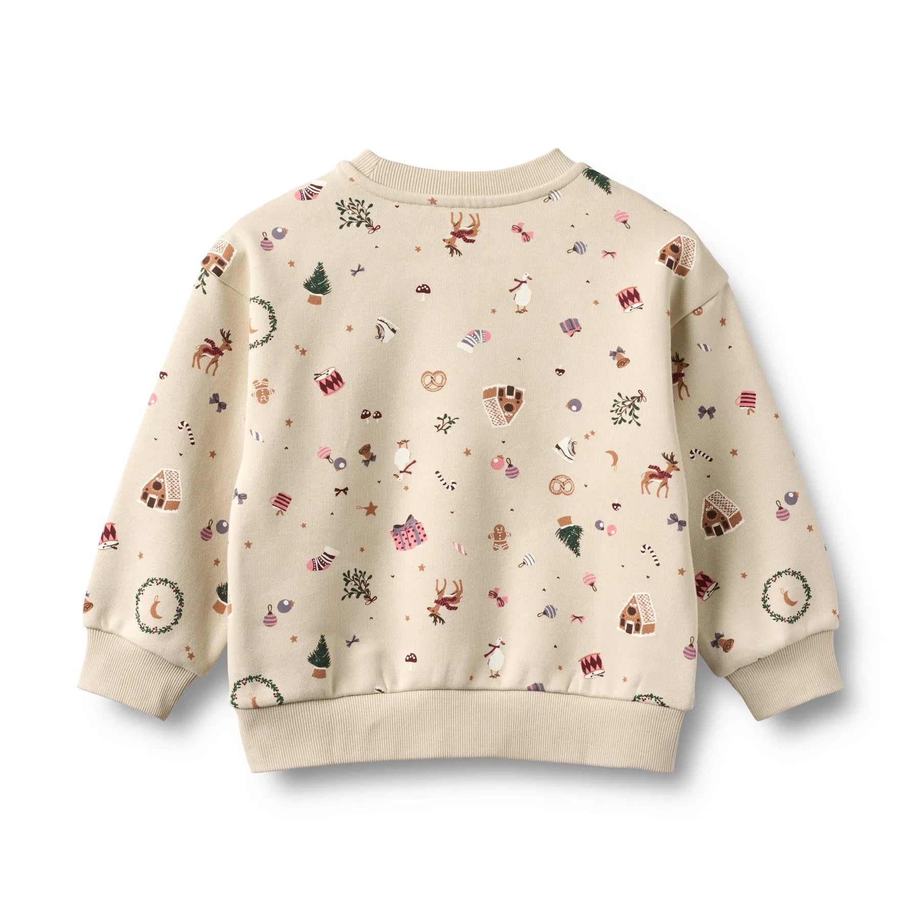 cremefarbenes Sweatshirt für Mädchen aus Bio-Baumwolle mit bunten Weihnachts-Motiven im Allover-Print