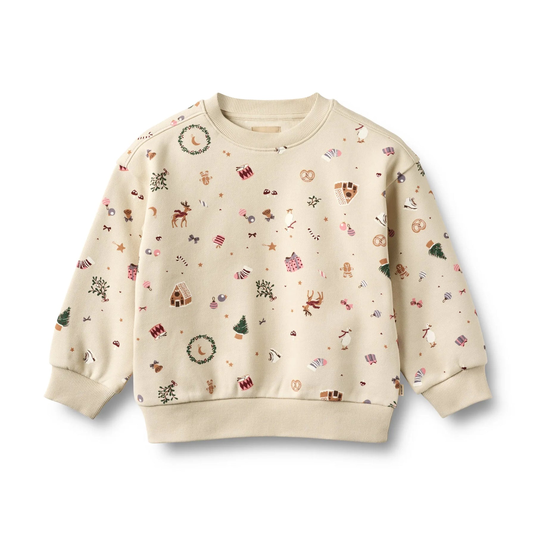 Das Sweatshirt ELLIOT von WHEAT ist zu 100% aus weicher, zertifizierter Bio-Baumwolle. Mit lockerer Passform und Rippbündchen an Hals, Ärmeln und Saum bietet ELLIOT Deinem Mädchen gemütlichen Tragekomfort für die kalte Jahreszeit. Das cremefarbene Sweatshirt lässt sich mühelos zu jeder Hose und jedem Rock kombinieren. Das außerordentlich niedliche Muster aus allerlei bunten Weihnachts-Motiven wie zB einer Weihnachtsgans, einem Lebkuchenhaus und vielem mehr lässt Euch jeden Tag etwas Neues entdecken und versetzt Euch in festliche Vorfreude.