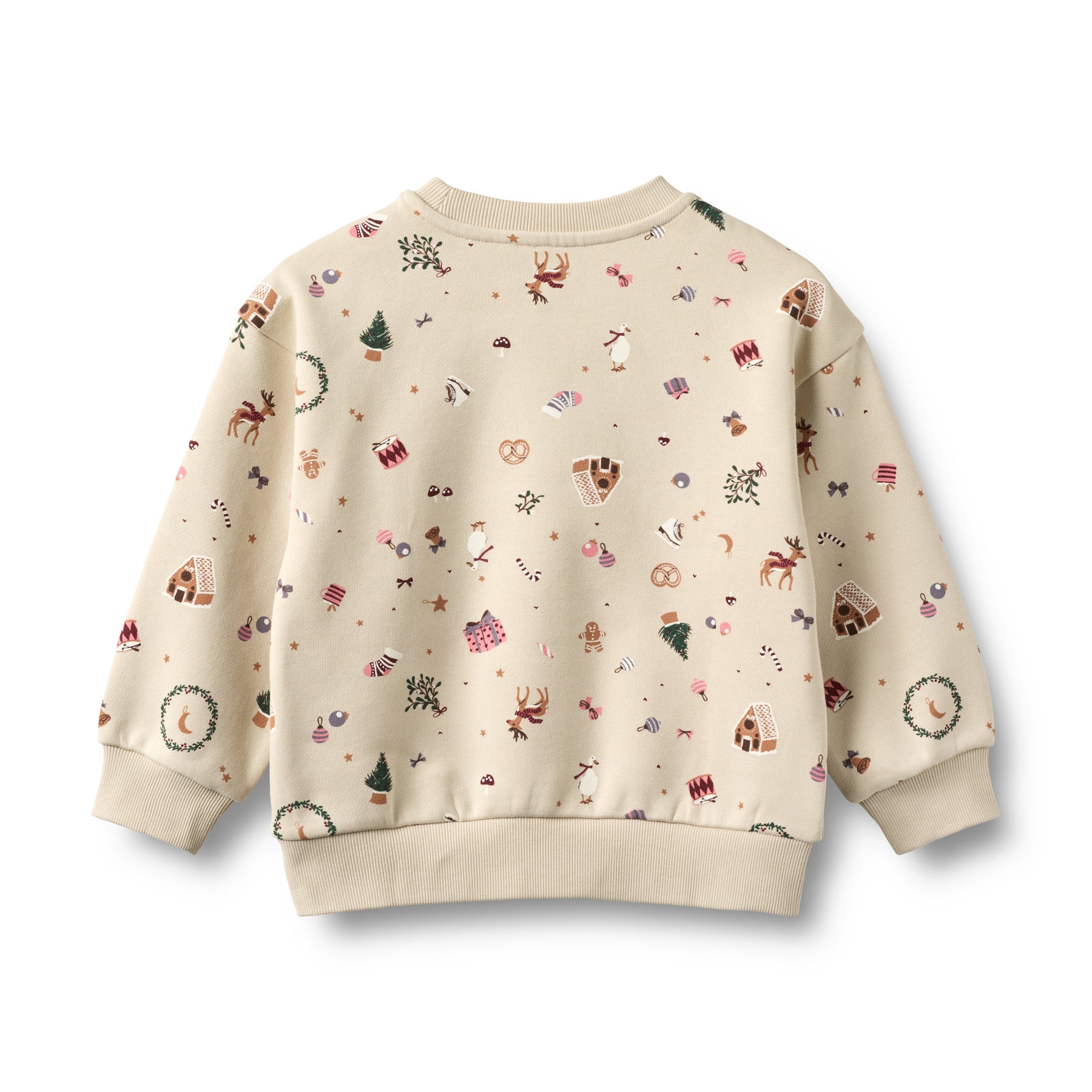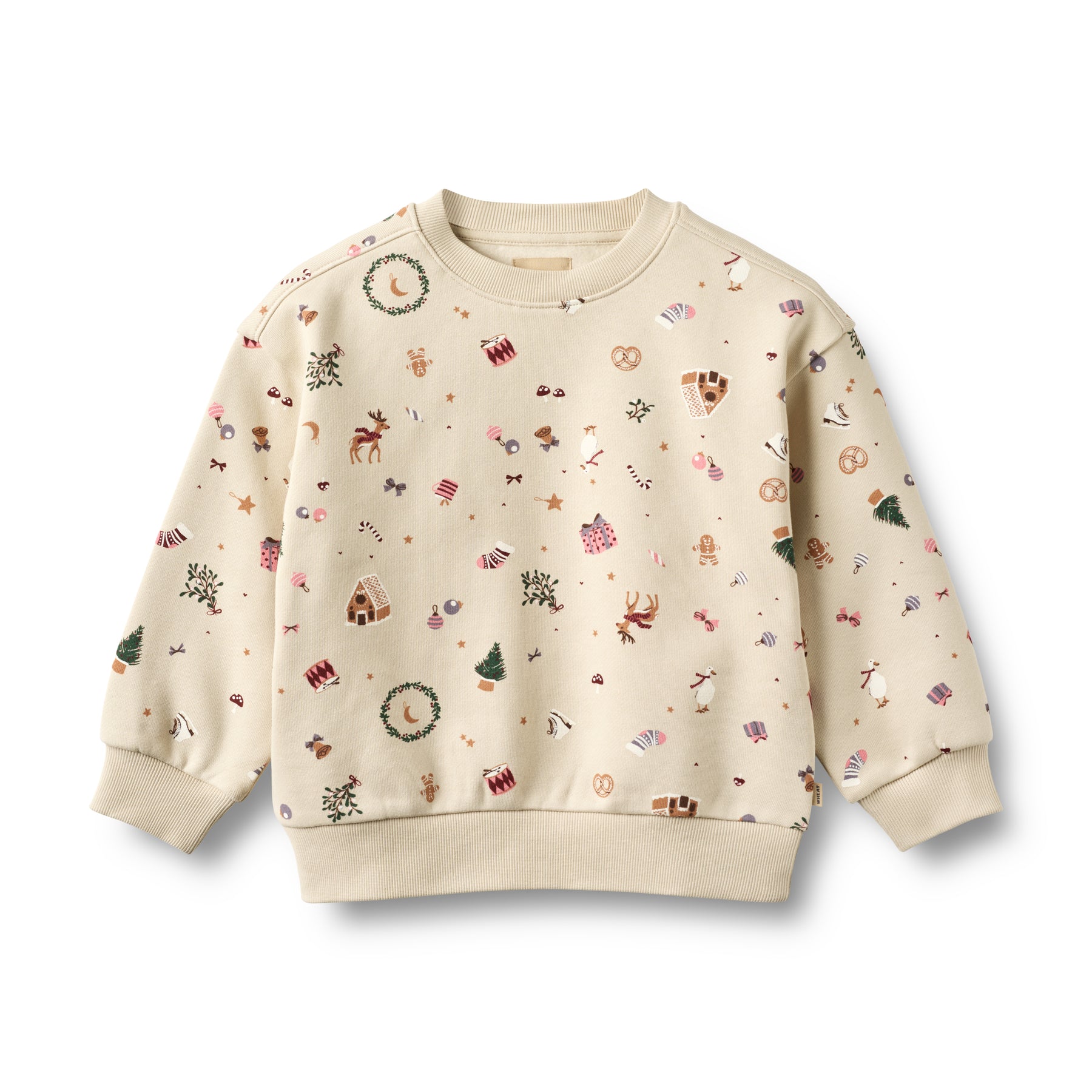 cremefarbenes Sweatshirt für Mädchen aus Bio-Baumwolle mit bunten Weihnachts-Motiven im Allover-Print